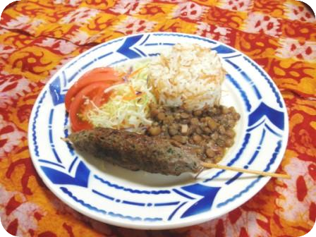 出来上がり!今回はフライパンで焼きました。焼いているところの写真を撮りたかったのですが、フライパンが汚なくて恥ずかしい(*´д`*)というスマヤさんから許可がでず・・・。完成写真です。作り方は昨日のレシピ⑤カフタ(牛ひき肉のつくね)をご覧ください。